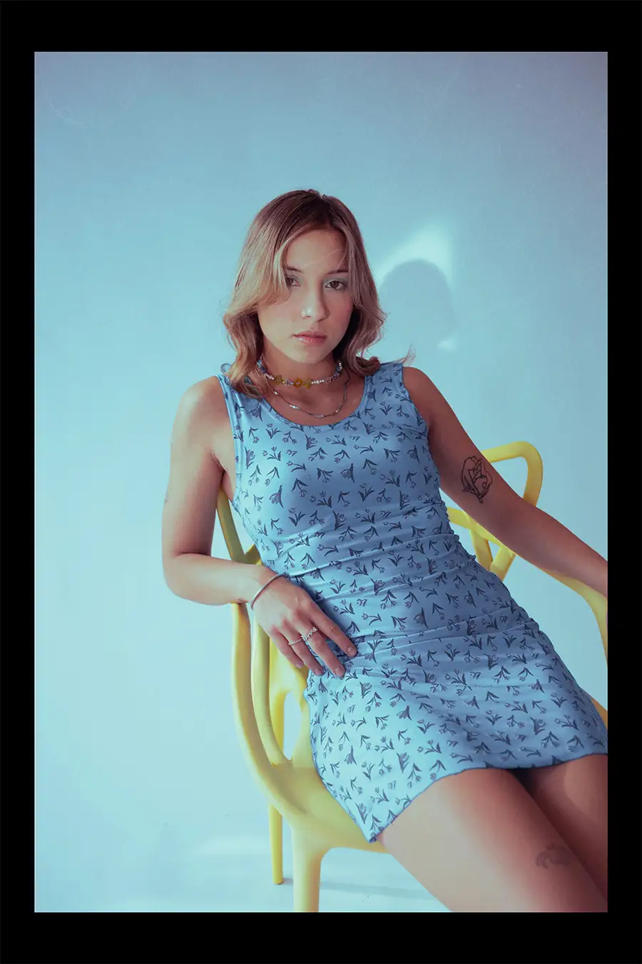 We started shooting against a large window and a single blue wall. Most of the images were created right there, manipulating the natural light with different fabrics and angles. The room became a canvas for intimate visual storytelling, and she carried the entire frame with ease.